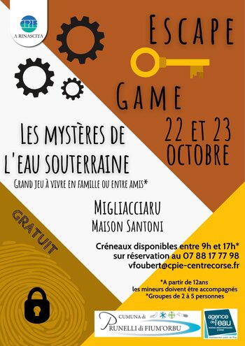 Dans le cadre du projet sur les enjeux de l'eau que nous menons avec la commune de Prunelli di Fiumorbu, nous vous proposons de participer à une expérience unique : L' Escape Game "Les mystères de l'eau souterraine".